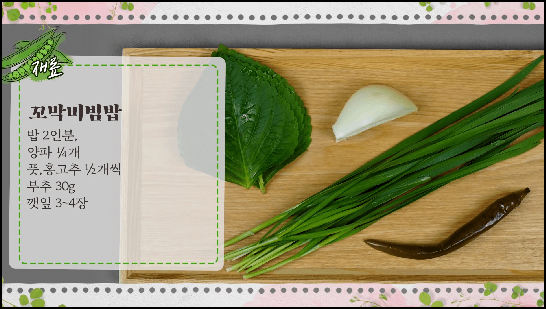 꼬막 무침 및 꼬막 비빔밥에 같이 넣을 야채를 썰어줍니다. 양파 1/4개는 반으로 잘라 채 썰어준 후 찬물에 잠깐 담가서 매운맛을 빼 줍니다. 부추는 1~2cm 길이로 잘라주고, 깻잎은 채 썰어줍니다. 풋고추 홍고추는 어슷 썰어줍니다.