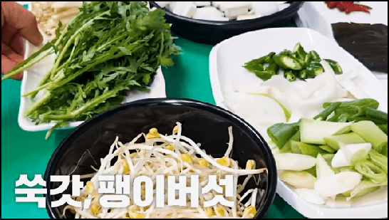 콩나물 120g은 깨끗이 씻어서 준비해두고, 팽이버섯, 쑥갓도 씻어서 준비해 둡니다.