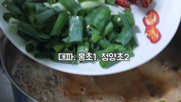 마지막으로 대파와 고추 썰어놓은 것을 넣어줍니다.