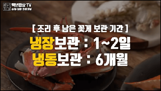 먹고 남은 꽃게는 지퍼백에 넣어 냉장 또는 냉동보관하면 됩니다. 냉장보관 시에는 1~2일, 냉동보관 시에는 6개월 까지 가능하다고 합니다.