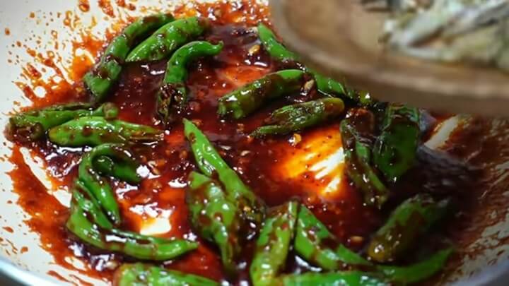 6. 꽈리고추 멸치볶음 맛있게 만드는법 - 양념장 넣고 볶기