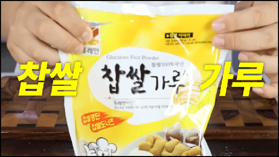 4) 비닐팩에 찹쌀 가루를 3큰술 넣어줍니다.