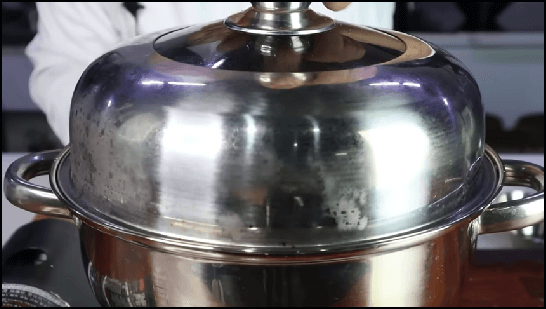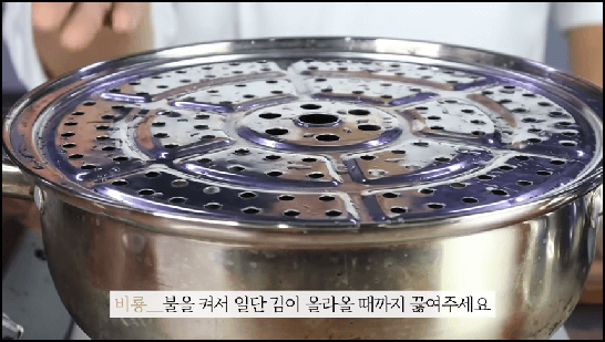 1) 찜기에 물을 1컵 넣고 채반을 올려서 물을 끓여줍니다. 꽈리고추를 처음부터 넣으면 안됩니다.
