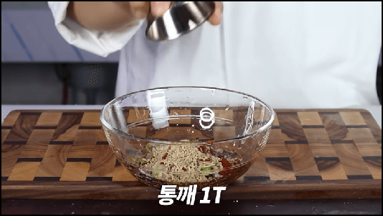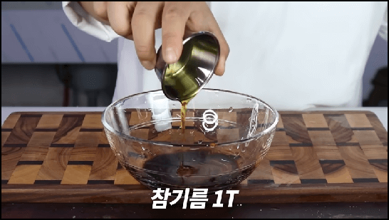 1) 양조간장 1큰술, 매실액 1큰술, 참기름 1큰술을 넣어줍니다.