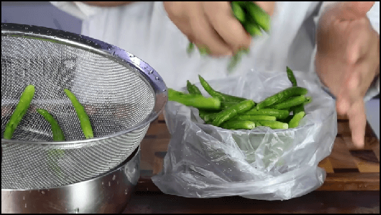 1) 먼저 비닐팩을 준비해서 꽈리고추를 모두 담아줍니다.