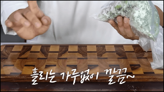 5) 그리고 입구를 잘 봉해서 흔들어 줍니다. 그러면 가루 날릴 염려없이 깔끔하게 가루를 입힐 수 있습니다.