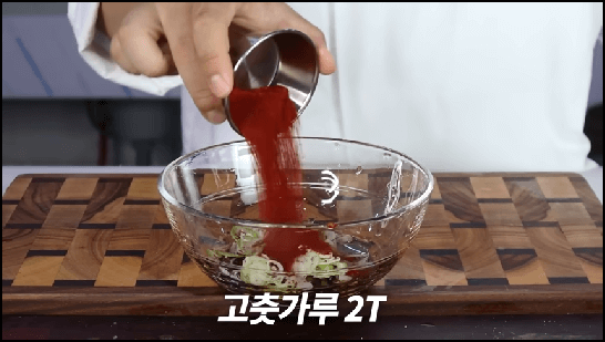 3) 고춧가루 2큰술을 넣어줍니다. 매운 것이 싫으면 고춧가루를 1큰술만 넣어도 됩니다.