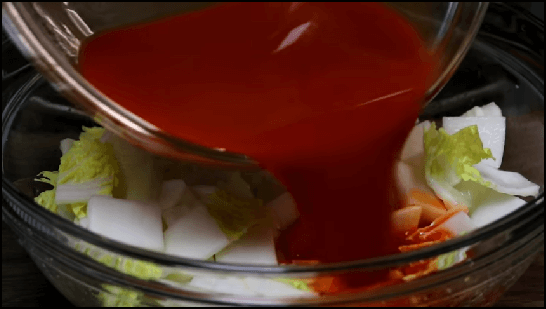 3. 나박김치 맛있게 담그는법, 나박김치 황금레시피 - 무와 배추에 밑국물 붓기