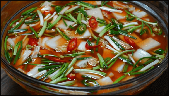 5. 나박김치 맛있게 담그는법, 나박김치 황금레시피 - 쪽파, 고추 넣고 마무리