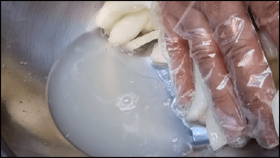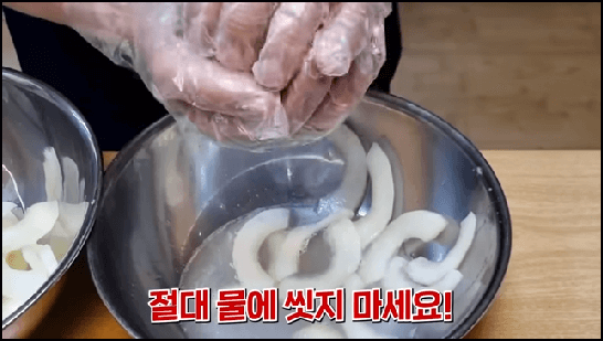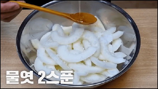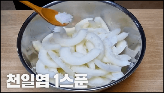 천일염 1스푼 + 물엿 2스푼 - 절이기