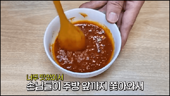 이 양념장은 아주 맛있는데요, 김대석 셰프님이 식당 운영하실 때 손님들이 너무 맛있어서 계속 더 달라고 요청했던 양념장입니다. 믿고 만들어 보시면 아주 만족하실 겁니다.