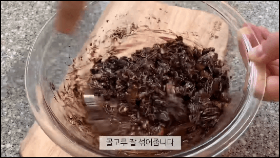 재료들을 골고루 잘 섞어줍니다. 가루류가 충분히 흡수되고 배어 들도록 잘 섞어주면 반죽이 윤기가 돕니다.