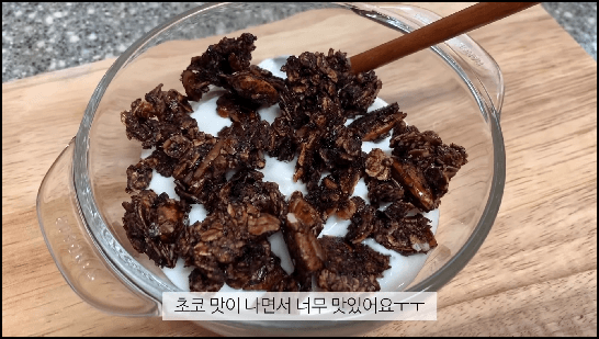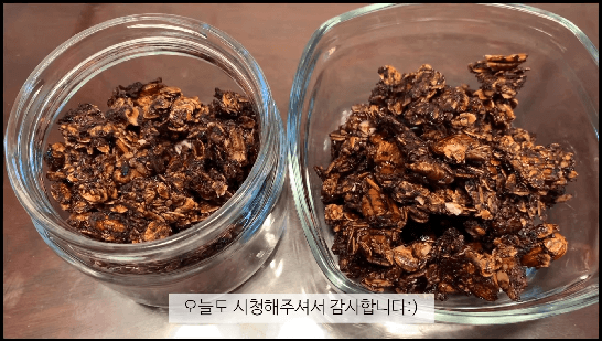 |출처 : 유튜브 데일리주, 그래놀라 만들기, 초코 그래놀라 레시피