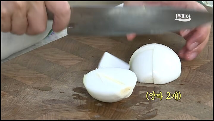 3) 양파도 큼직하게 4등분으로 잘라줍니다.
