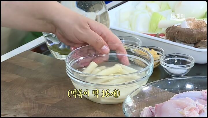 2) 떡볶이 떡도 물에 미리 담가 둡니다.