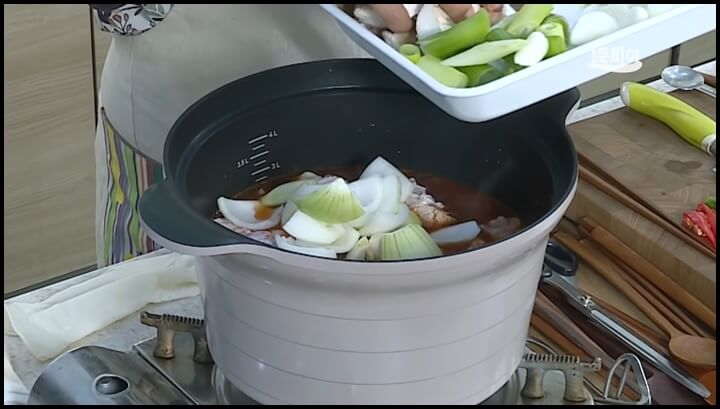 4) 대파도 두껍게 썰었기 때문에 같이 넣어 줍니다.
