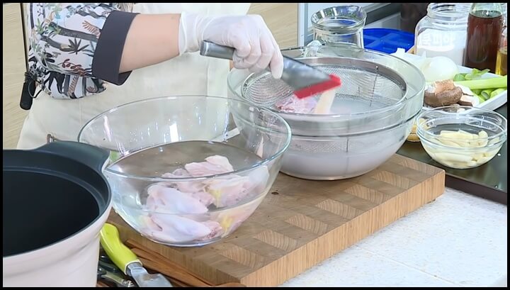 이렇게 하면 닭 손질이 끝났습니다. 닭의 잡내를 확실히 잡아주는 방법이네요!