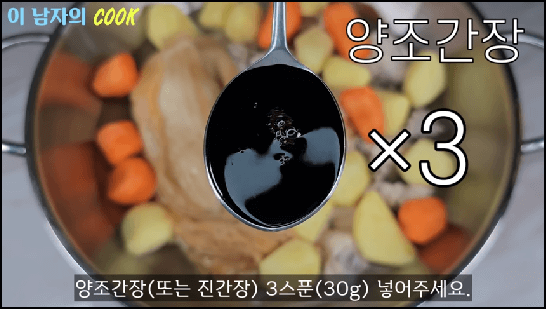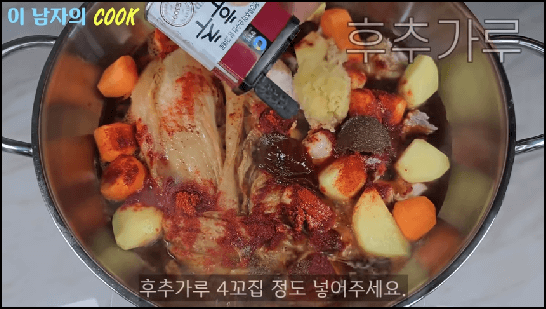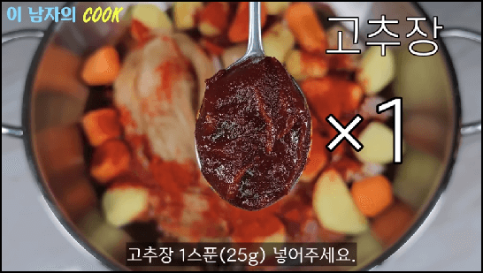 [출처 : 유튜브 이 남자의 쿡, 닭볶음탕 황금레시피, 묵은지 닭도리탕 맛있게 만드는법]
