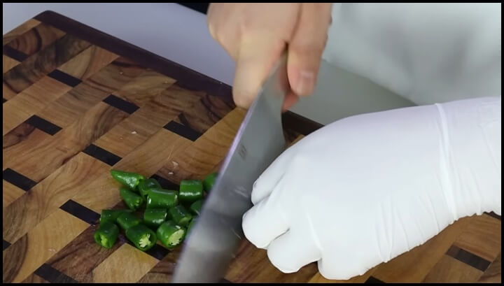 청양고추는 매운 걸 못드시는 분은 1~2개 정도, 매콤한 맛을 좋아하시는 분들은 3~4개까지 넣어도 좋습니다. 청양고추도 적당한 크기로 잘라줍니다.