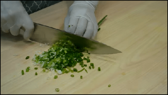 동그랑땡에 들어갈 야채들을 썰어서 준비합니다. 쪽파는 잘게 송송 썰어주고, 홍고추 2개도 씨를 제거한 후 잘게 썰어줍니다. 홍고추 때신 청양고추를 사용해도 좋습니다.