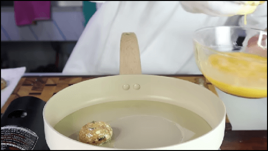 예쁘게 빚은 동그랑땡을 이제 굽기만 하면 되는데, 계란물이 흘러나오지 않고 예쁘게 부칠 수 있는 팁입니다.