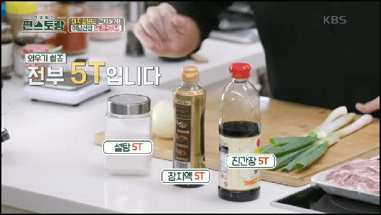 류수영 돼지갈비찜 맛있게 만드는 법에 들어가는 양념은 간단한 편입니다. 간장, 참치액, 설탕이 1:1:1 비율로 각각 5T씩 넣으면 됩니다.