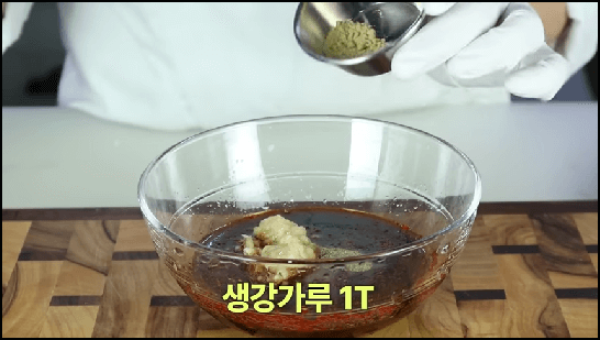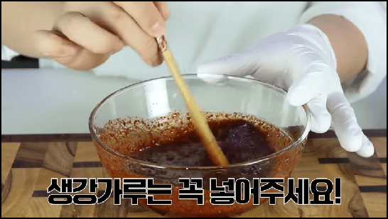 돼지갈비 1.2kg 기준으로 만드는 것이 가장 양념이 맛있고, 진간장 12큰술에 고춧가루 5큰술, 미림 3큰술, 다진마늘 3큰술, 설탕 2큰술, 물엿 3큰술, 후추 1큰술, 생강가루 1큰술을 넣어서 골고루 잘 섞어줍니다. 생강가루를 넣고 안넣고 맛의 차이가 굉장히 크기 때문에 꼭 넣는 것이 좋습니다.