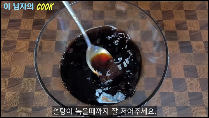 설탕이 녹을 때까지 잘 저어줍니다. 그러면 양념장은 완성입니다.