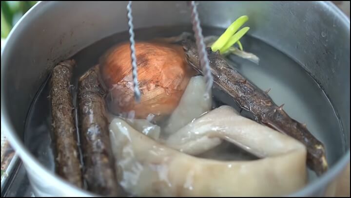 1. 돼지껍데기 요리법, 돼지껍데기 볶음 - 돼지껍데기 1차 삶기