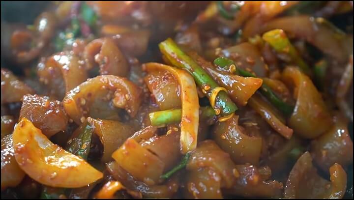 7. 돼지껍데기 요리법, 돼지껍데기 볶음 - 야채 넣고 볶기