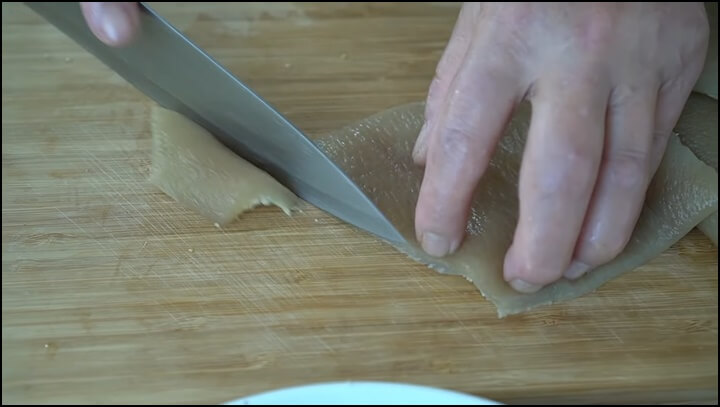 4. 돼지껍데기 요리법, 돼지껍데기 볶음 - 썰기