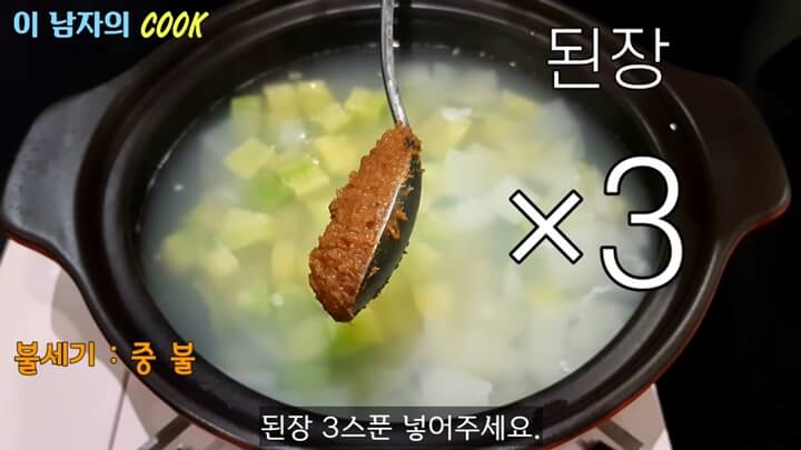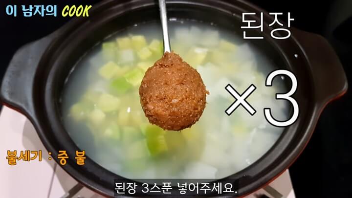 [레시피 출처 : 유튜브 이 남자의 쿡, 된장찌개 맛있게 끓이는 방법]