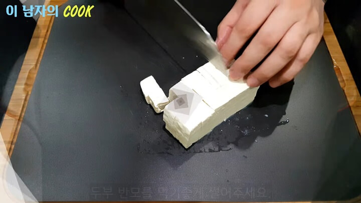 두부 반모를 준비해서 먹기 좋게 깍둑썰기 해 줍니다.