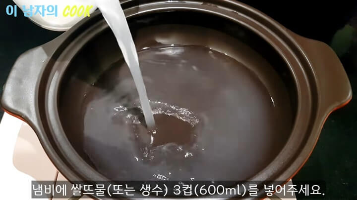 냄비에 쌀뜨물 600ml를 넣어줍니다. 쌀뜨물 대신 생수를 넣어도 좋습니다.