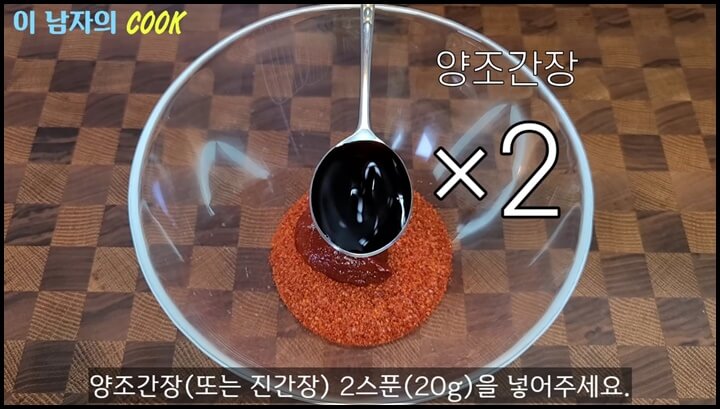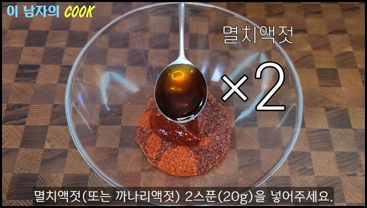 2) 양조간장 2스푼, 멸치액젓 2스푼을 같이 넣어줍니다.