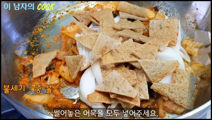 4) 양파와 함께 어묵도 모두 다 넣고 같이 볶아줍니다.