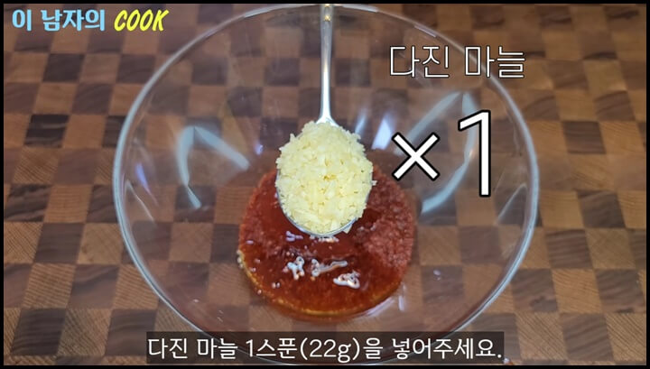 4) 다진 마늘 1스푼과 설탕 1 작은스푼을 넣어줍니다.