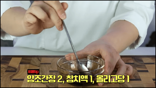 간장 2큰술에 참치액 1큰술을 넣고 올리고당 1큰술을 넣어서 잘 섞어주면 우리 입맛에 맞는 맛있는 간장 소스를 만들 수 있습니다.
