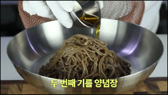 [출처 : 유튜브 요리왕비룡, 들기름 막국수 레시피, 들기름 막국수 만들기]