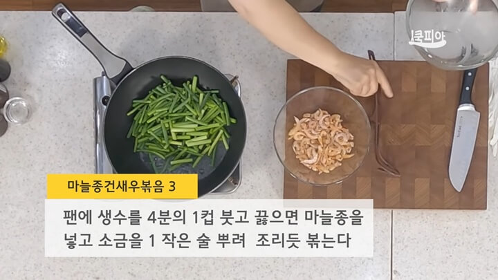 [출처 : 유튜브 쿡피아, 마늘쫑 조리법 마늘쫑새우볶음볶음 황금레시피]