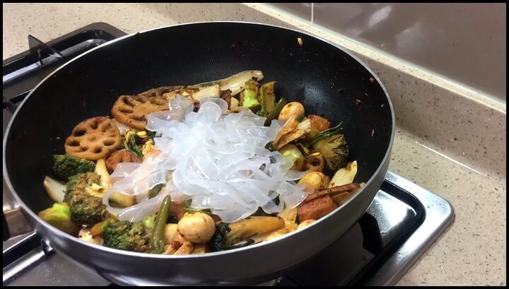11) 마지막으로 불린 당면을 넣고 골고루 섞어가며 볶아줍니다.
