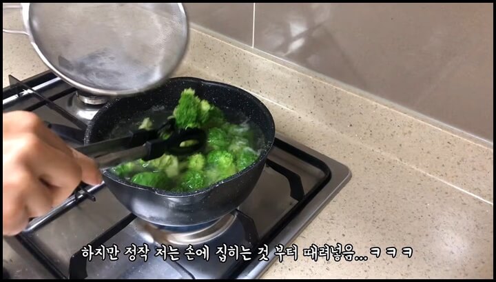 3) 브로콜리도 넣고 데쳐내고,