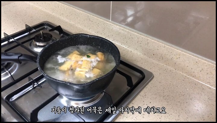 6) 기름이 첨가된 어묵은 제일 마지막에 데쳐 냅니다.