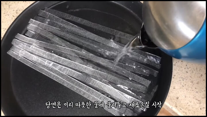 당면은 미리 따뜻한 물에 불려두고 재료 손질을 시작합니다.