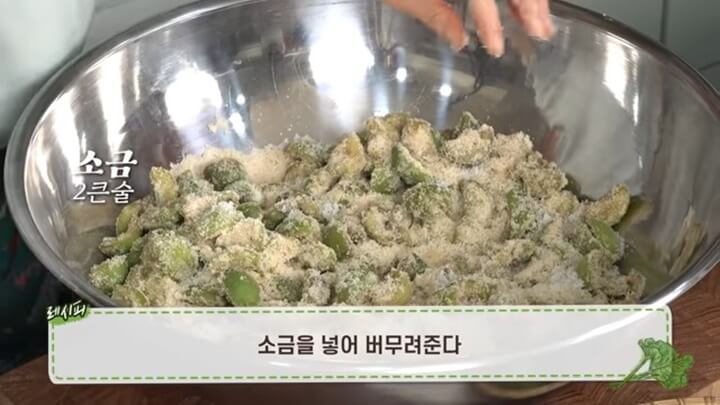 매실장아찌 담그는법은 이렇게 설탕을 버무린 다음, 소금 2큰술을 넣어 버무려주면 됩니다.