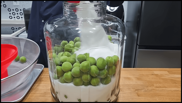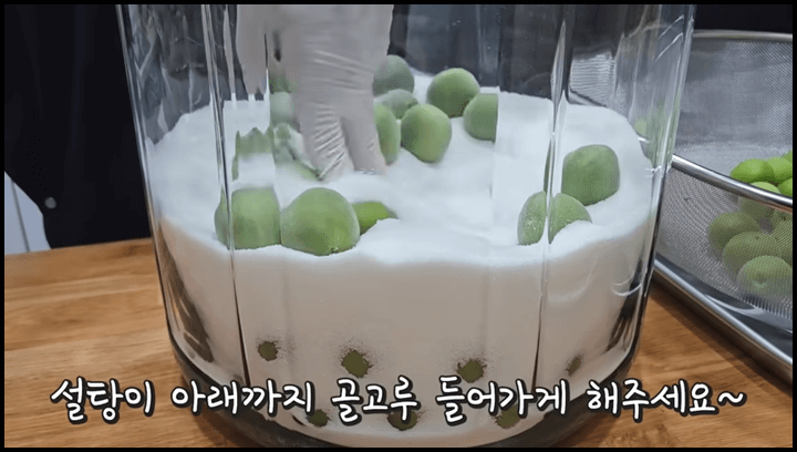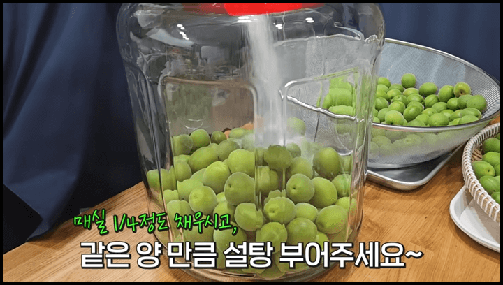 3) 이렇게 매실과 설탕을 번갈아가며 켜켜이 담아줍니다.