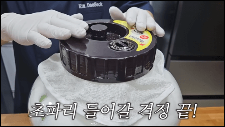 6) 이 때 뚜껑은 잠그지 말고 덮어주기만 하면 됩니다. 그럼 초파리는 들어가지 않고, 가스가 차는 것을 막아줍니다.