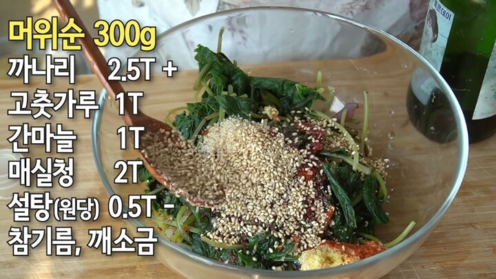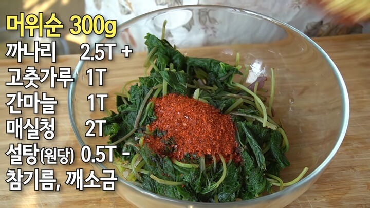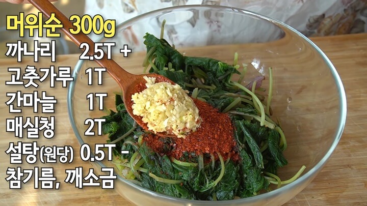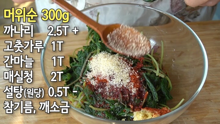 [출처 : 유튜브 윤이련 50년 요리 비결, 머위나물 무침]