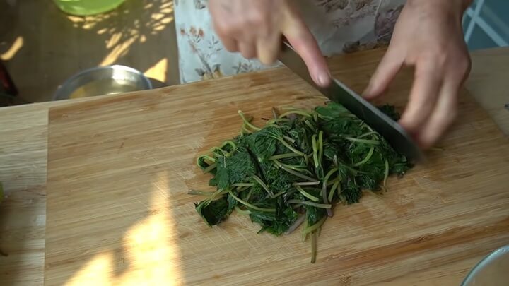 머위나물은 먹기 좋게 적당한 크기로 썰어주세요. 머위순, 어린잎은 머위 본연의 향을 느낄 수 있도록 까나리 액젓으로 무치고, 큰 잎은 억세기 때문에 된장으로 바락바락 무쳐주면 좋아요.