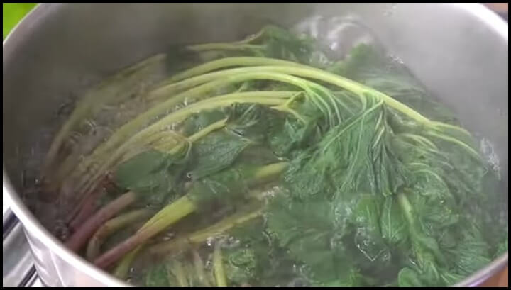 줄기가 말랑해질 때까지 삶아주면 되고, 손으로 줄기를 눌러보아 말랑해지면 꺼냅니다.